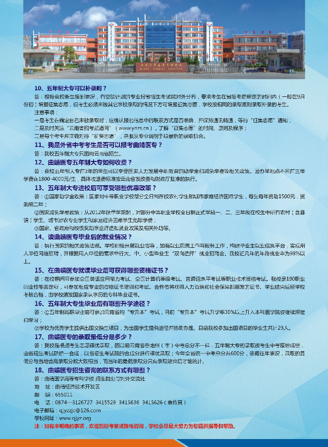 曲靖醫(yī)學(xué)高等專科學(xué)校中考報(bào)考問答