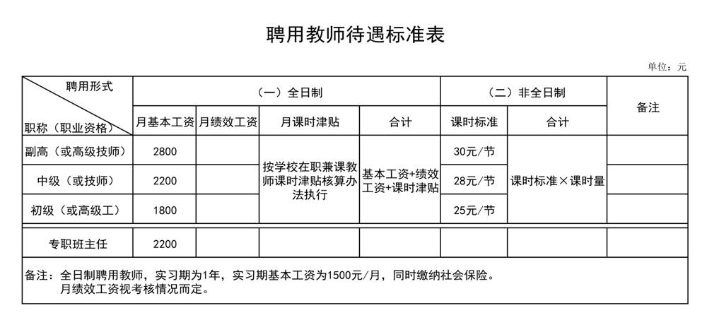 相關(guān)標(biāo)準(zhǔn)詳見附件2《聘用教師待遇標(biāo)準(zhǔn)表》。