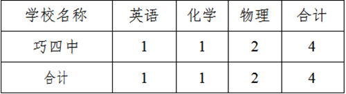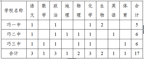 巧一中5名,巧二中6名,巧三中6名,巧四中4名,新華小學6名,白鶴灘鎮(zhèn)中心學校7名,附小3名,職業(yè)高級中學3名,縣幼兒園2名,教科中心9名,共51名。