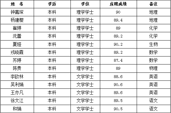 為滿足2016年學校教育教學工作的需要,提高教師隊伍的素質(zhì),優(yōu)化教師隊伍的結構,將“高學歷、高素質(zhì)、專業(yè)化”的優(yōu)秀人才充實到我校。根據(jù)相關規(guī)定和要求,鐘嘉琛等13名高等院校畢業(yè)生通過對教育教學工作的認識、語言表達能力、應變能力、專業(yè)知識問答等綜合能力的考核,體檢合格,相關證件齊全,擬聘用鐘嘉琛等13名同志為事業(yè)單位工作人員,現(xiàn)予以公示,公示期為7天(2016年7月25日至8月1日)。