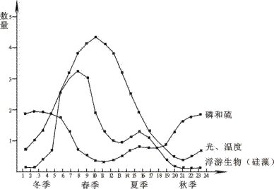 (2)下圖表示硅藻屬浮游生物的數(shù)量和北溫帶海洋上層一些非生物因素的季節(jié)性變化。下列解釋正確的是