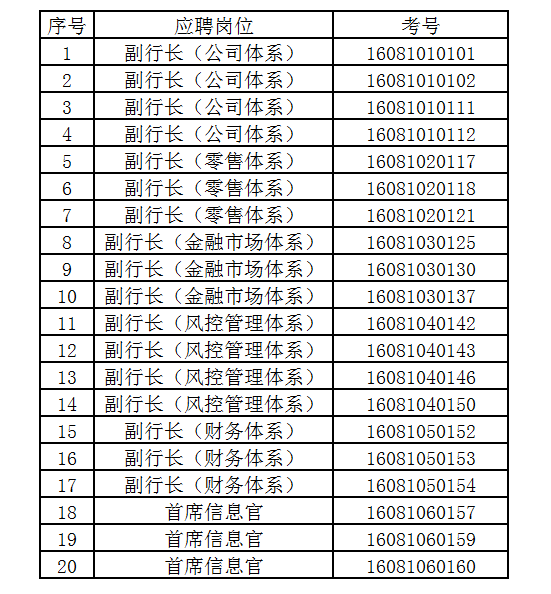 經(jīng)過2016年云南紅塔銀行高級(jí)管理人員筆試考試,面試名單現(xiàn)已確定,現(xiàn)將入圍面試的應(yīng)聘人員名單公示如下: