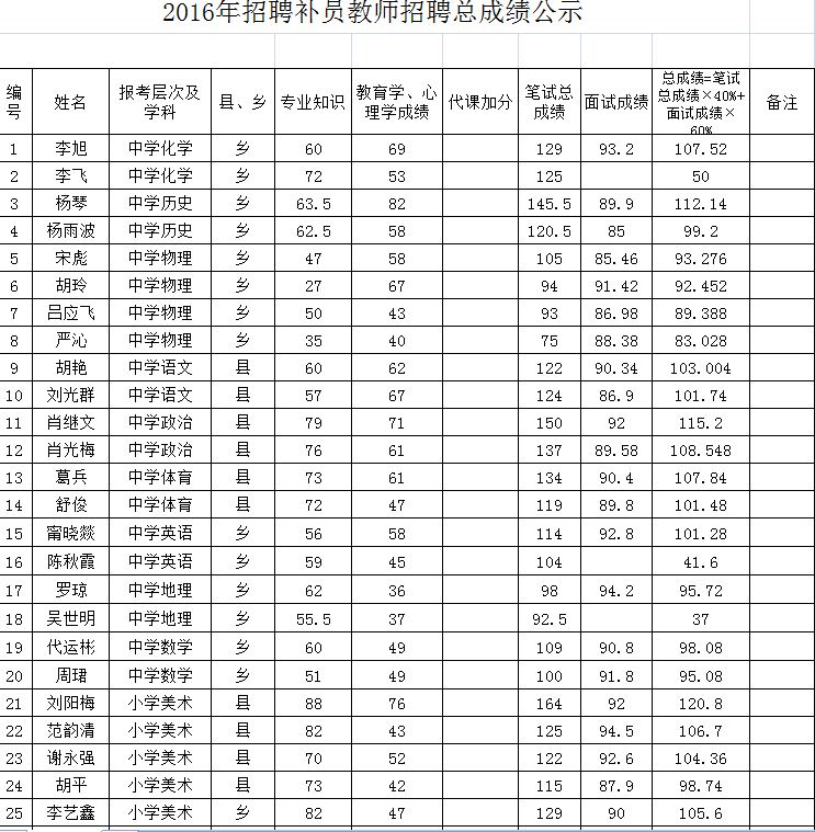 昭通市鹽津縣2016年招聘補員教師成績公示