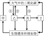 C.圖中乙、丙、丁三者組成的食物鏈是:乙→丙→丁