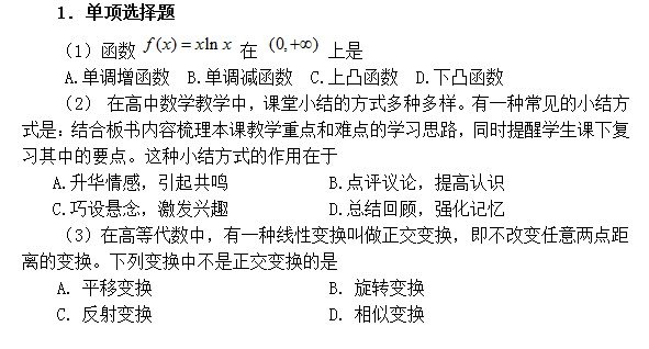 數(shù)學(xué)學(xué)科知識包括大學(xué)本科數(shù)學(xué)專業(yè)基礎(chǔ)課程和高中課程中的數(shù)學(xué)知識。