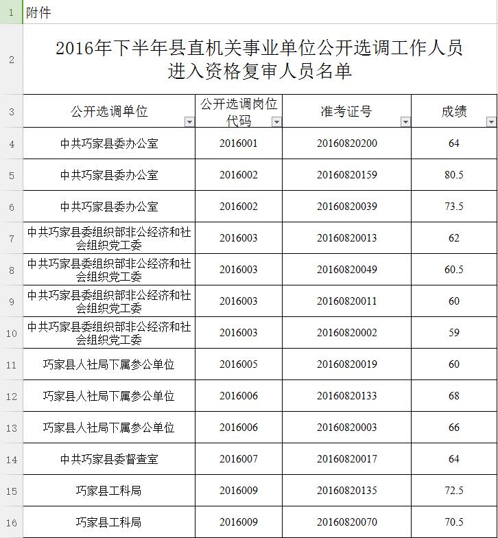 擬進入資格復審人員名單的考生,必須于2016年8月25日上午9點至11點、下午3點至5點,攜帶相關(guān)資料到巧家縣人社局二樓會議室進行資格復審,逾期不到者,視為自動放棄資格復審。