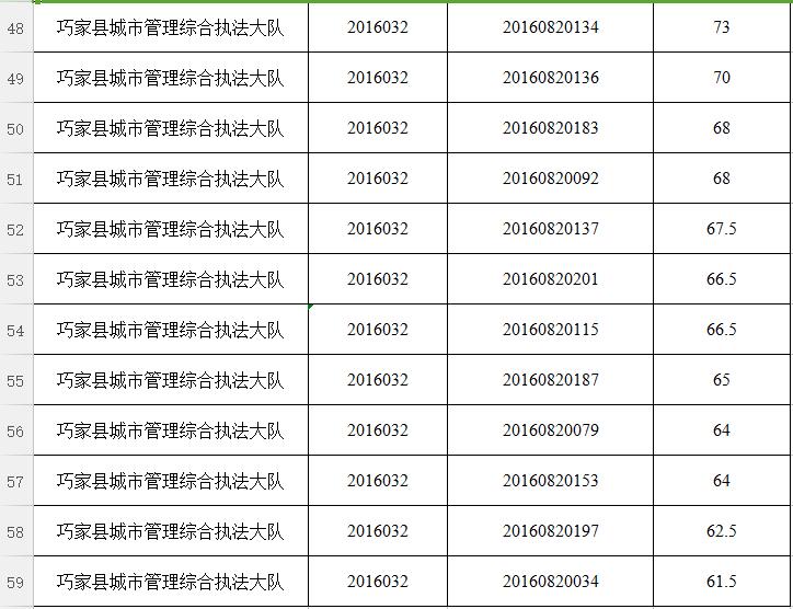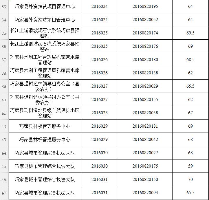 經(jīng)巧家縣縣直機關(guān)事業(yè)單位2016年下半年公開選調(diào)工作領(lǐng)導組研究決定,本次公開選調(diào)筆試最低合格分數(shù)線確定為55分。筆試總成績達不到最低控制分數(shù)線的考生,不得進入資格復審、面試、考察和業(yè)績評價等環(huán)節(jié)。對達到最低合格分數(shù)控制線以上人員,按崗位選調(diào)人數(shù)比例1:2的比例確定資格復審人員,分數(shù)并列的,一同列入資格復審,分數(shù)超過控制線人數(shù)不足崗位1:2要求的,按1:1進入資格復審,名單附后。
