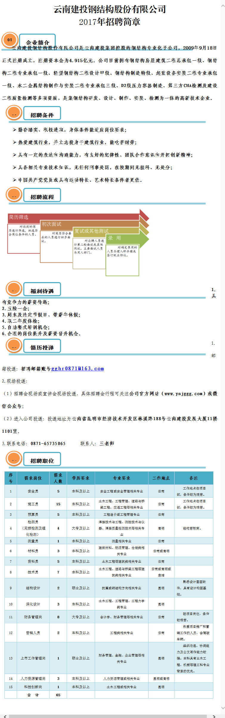 云南建投鋼結(jié)構(gòu)股份有限公司2017年招聘簡章