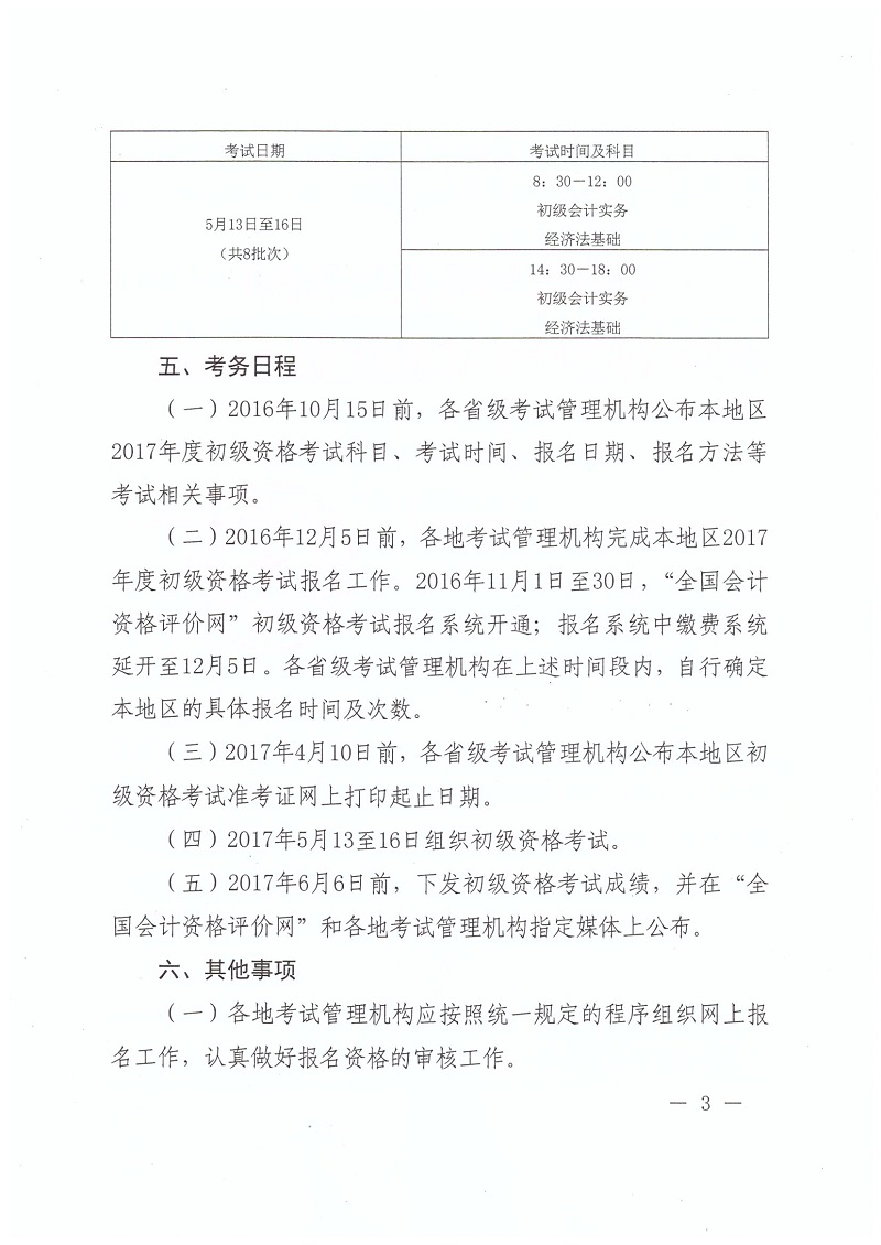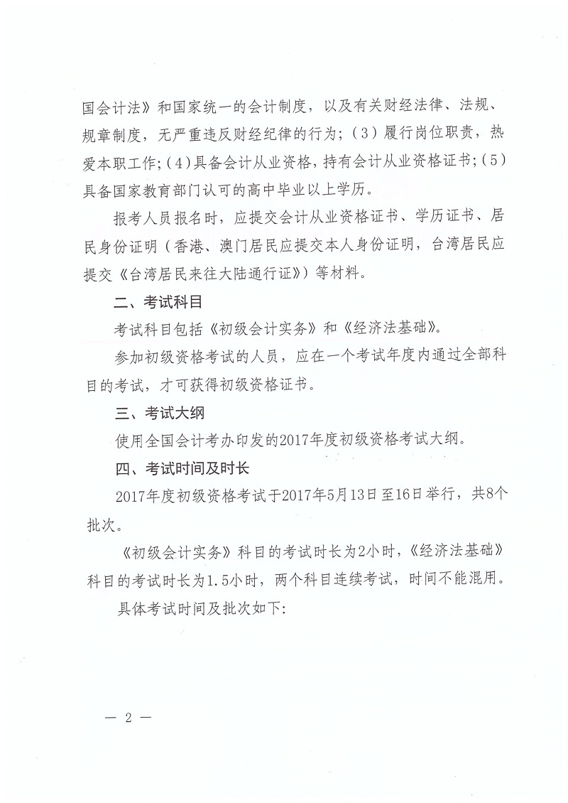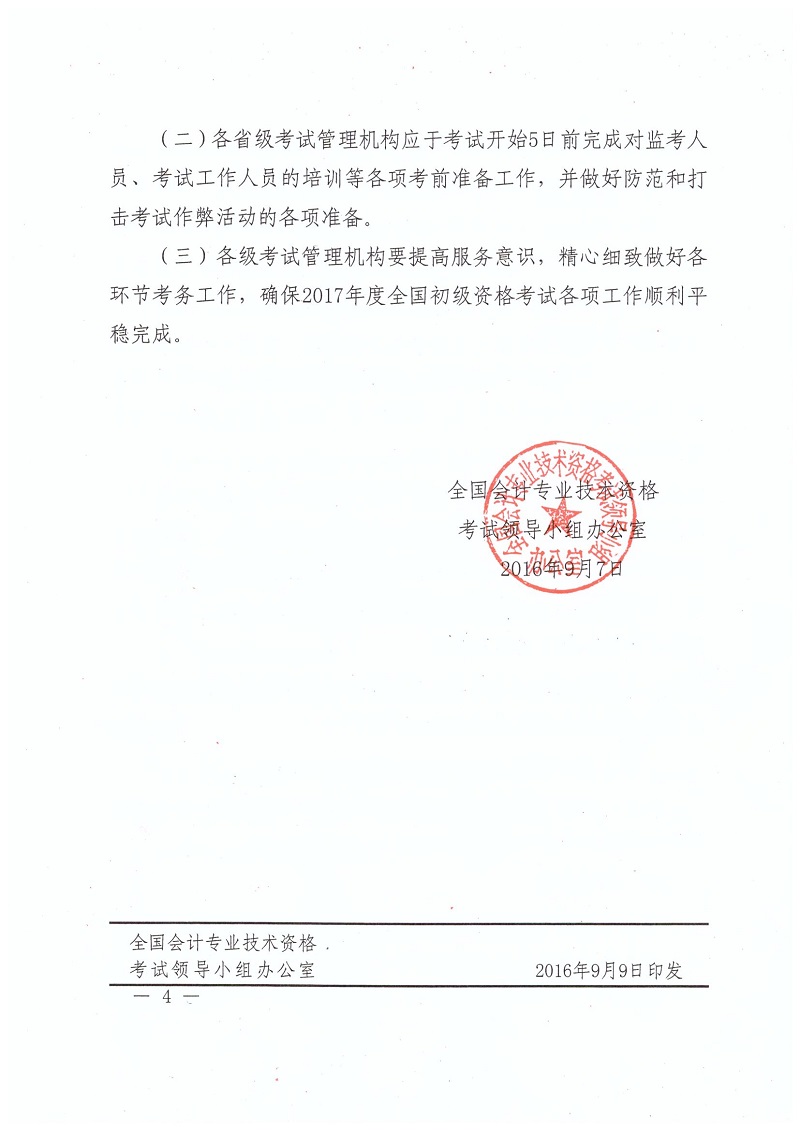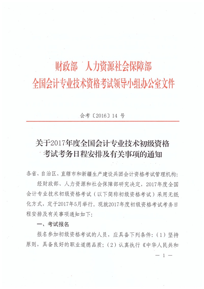 2017年全國(guó)會(huì)計(jì)專業(yè)技術(shù)初級(jí)資格考試通知