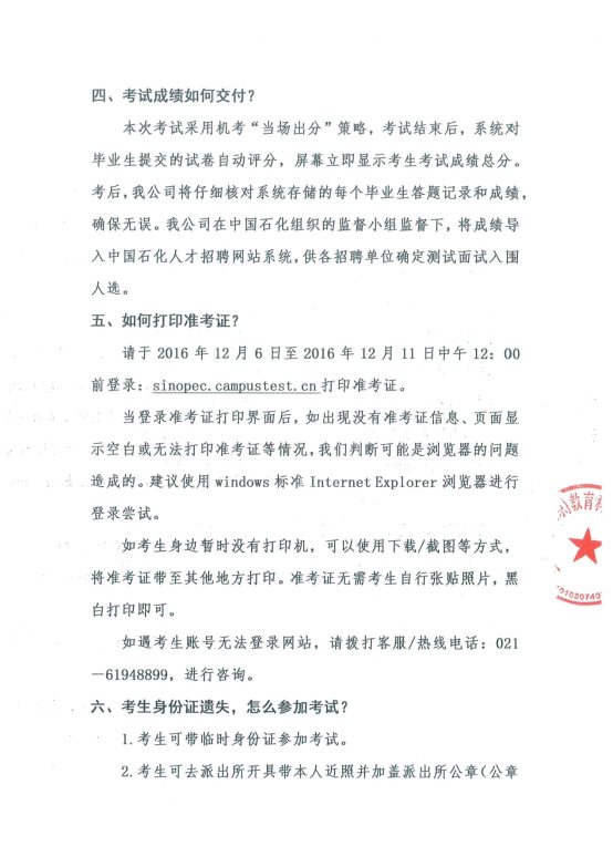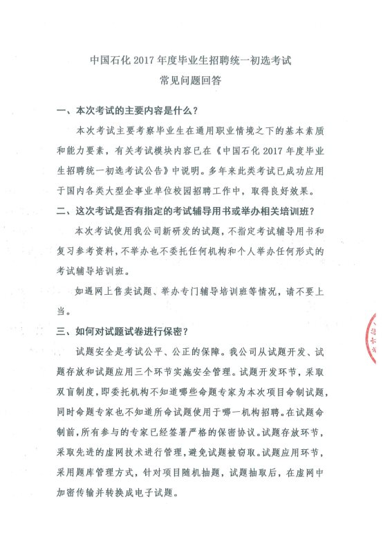 中國石化2017年度畢業(yè)生招聘統(tǒng)一初選考試常見問題回答