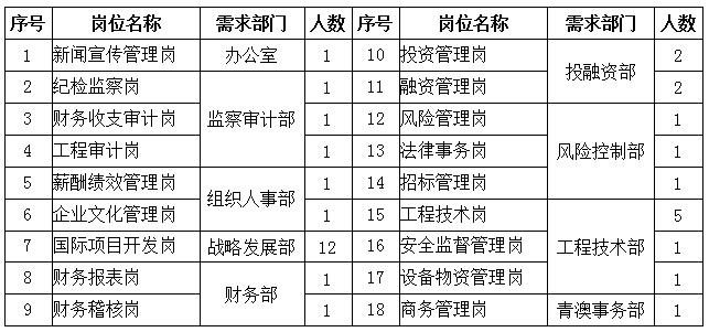 為落實國家“一帶一路”戰(zhàn)略,適應公司發(fā)展需要,經(jīng)研究,決定面向社會公開招聘相關人員,現(xiàn)就有關事宜公告如下: