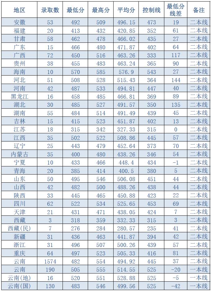 云南經(jīng)濟(jì)管理學(xué)院2018年各省