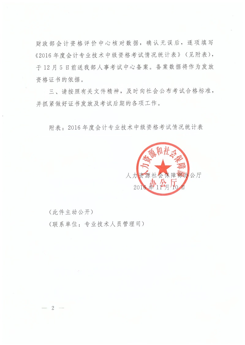 2016年全國(guó)會(huì)計(jì)專業(yè)技術(shù)中級(jí)資格考試合格標(biāo)準(zhǔn)通知