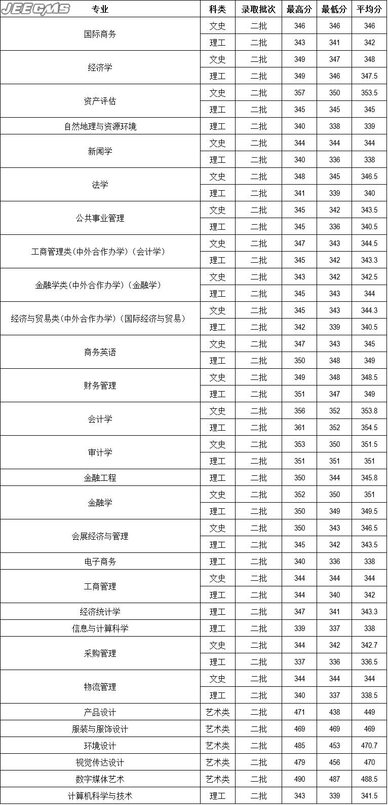 云南財經(jīng)大學(xué)2016年江西省錄取情況一覽表