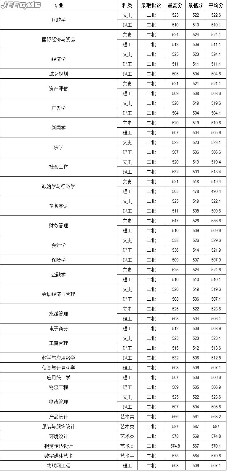 云南財(cái)經(jīng)大學(xué)2016年湖北省錄取情況一覽表