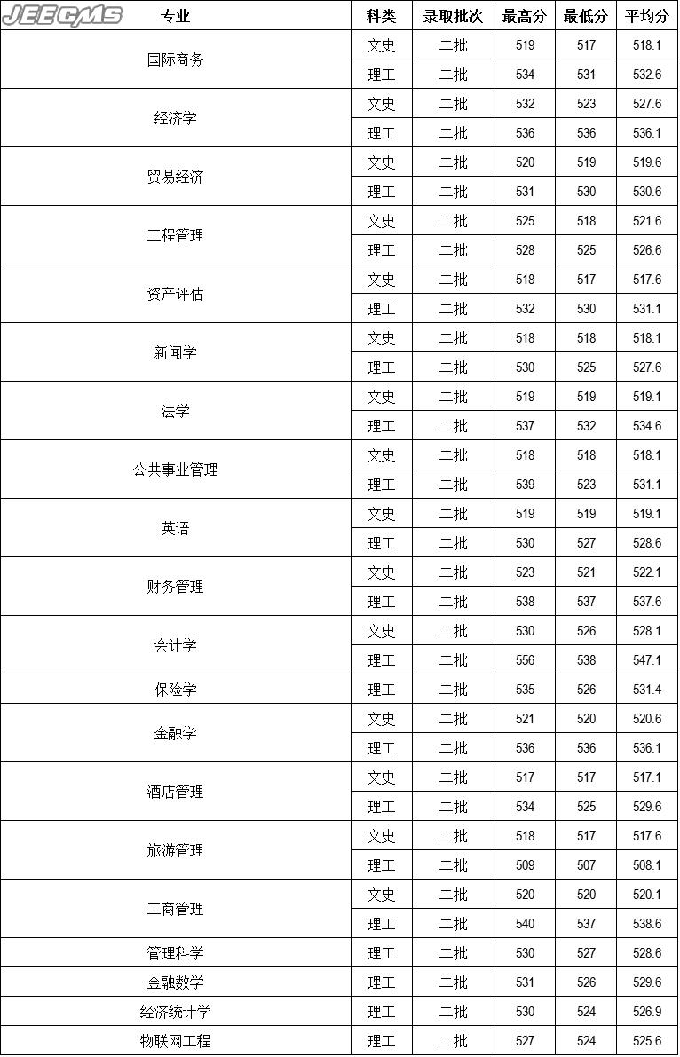 云南財(cái)經(jīng)大學(xué)2016年河北省錄取情況一覽表