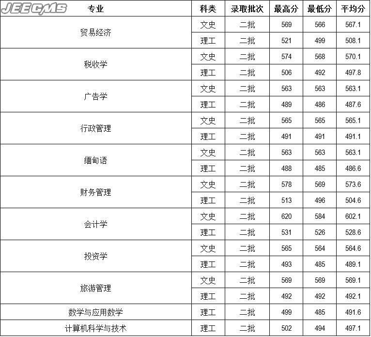 云南財(cái)經(jīng)大學(xué)2016年海南省錄取情況一覽表
