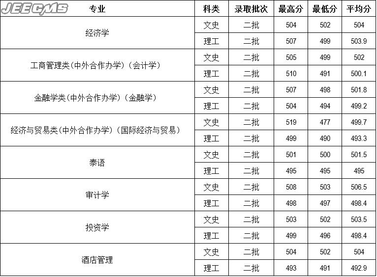 云南財經(jīng)大學(xué)2016年廣西壯族自治區(qū)錄取情況一覽表