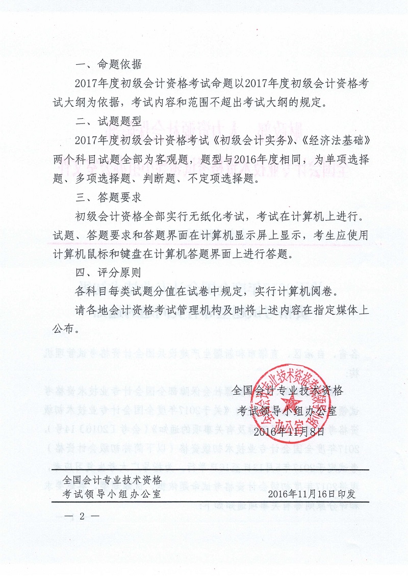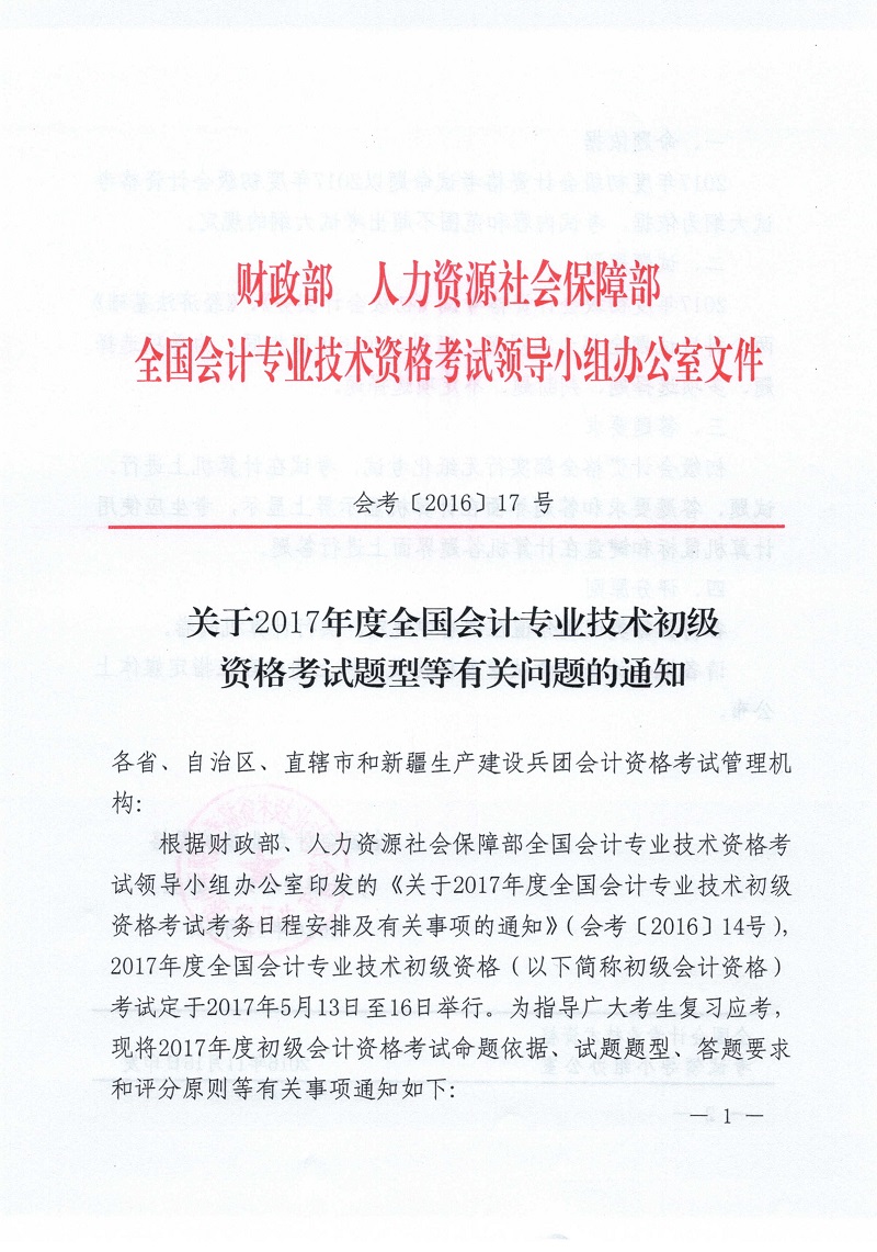 2017年度全國(guó)會(huì)計(jì)專(zhuān)業(yè)技術(shù)初級(jí)資格考試題型通知