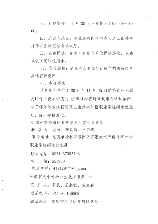 云南外事外語職業(yè)學(xué)院2017屆畢業(yè)生雙向選擇洽談會邀請函