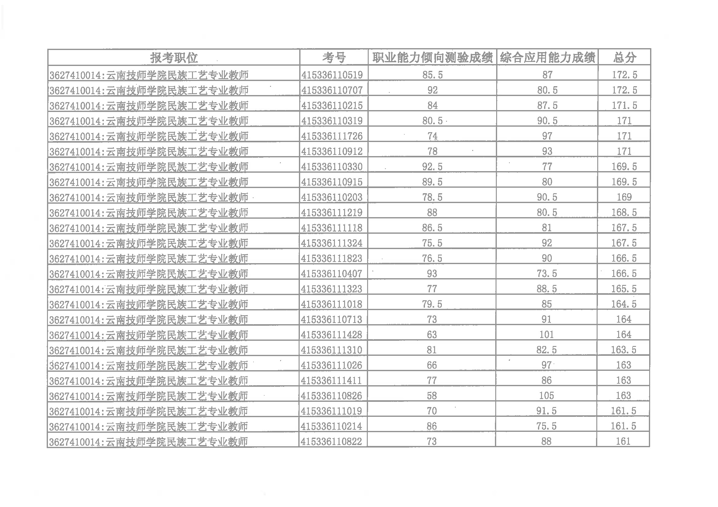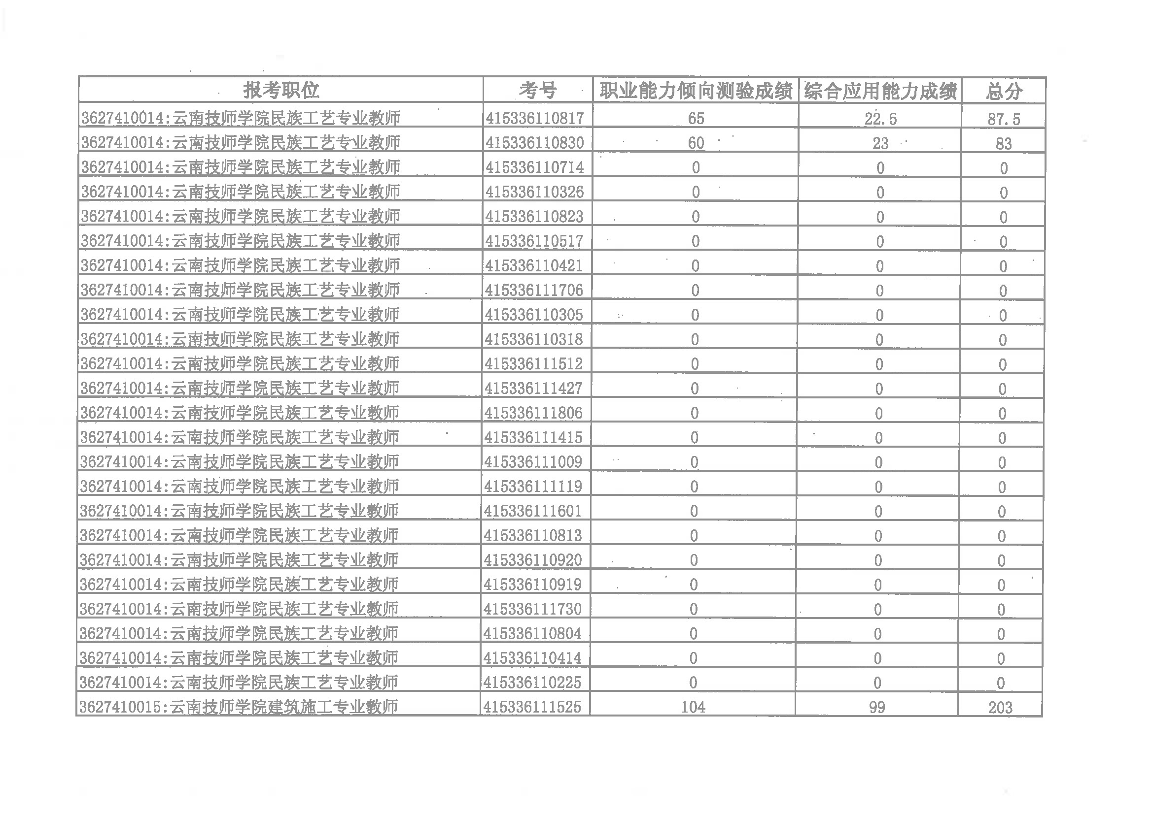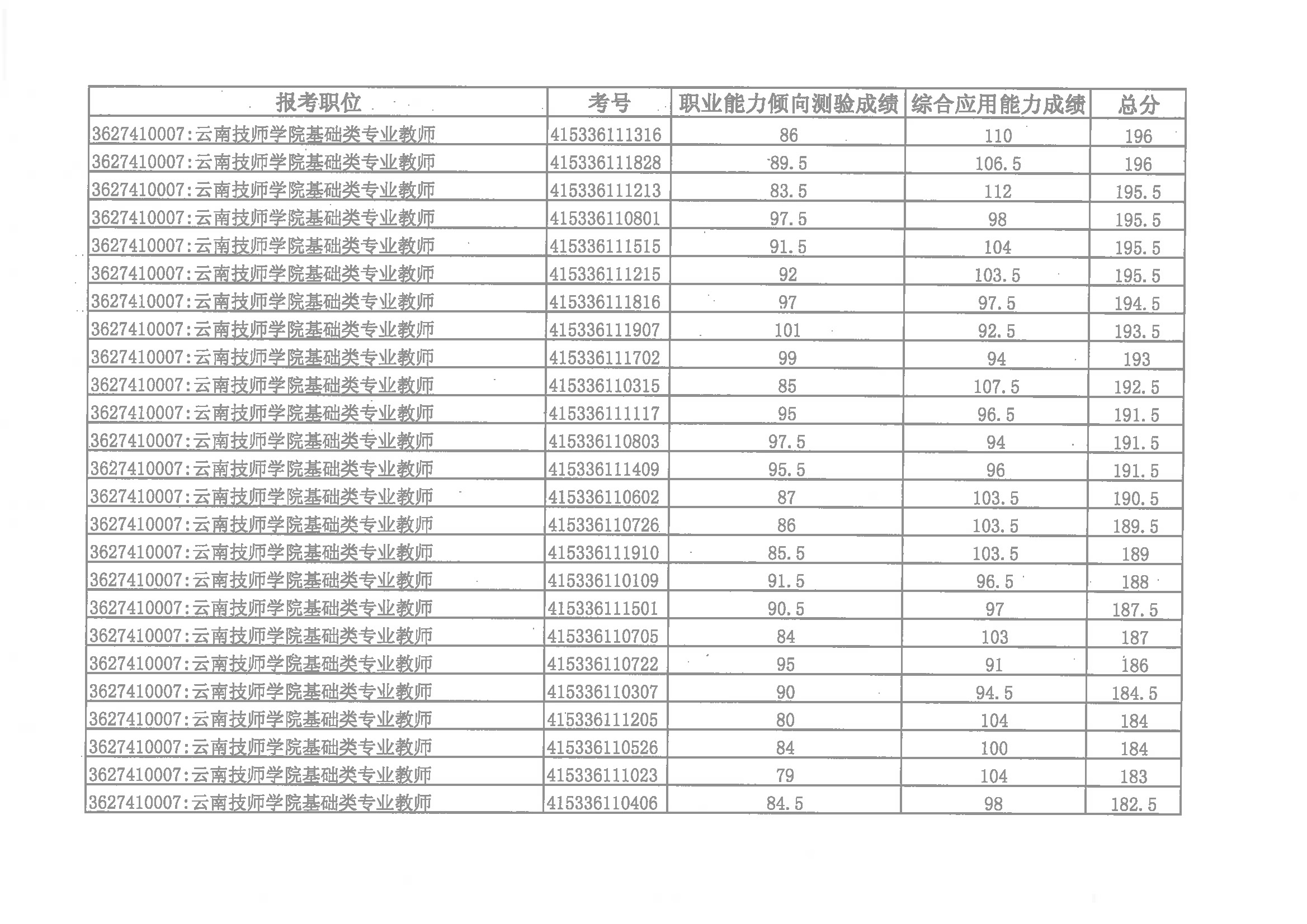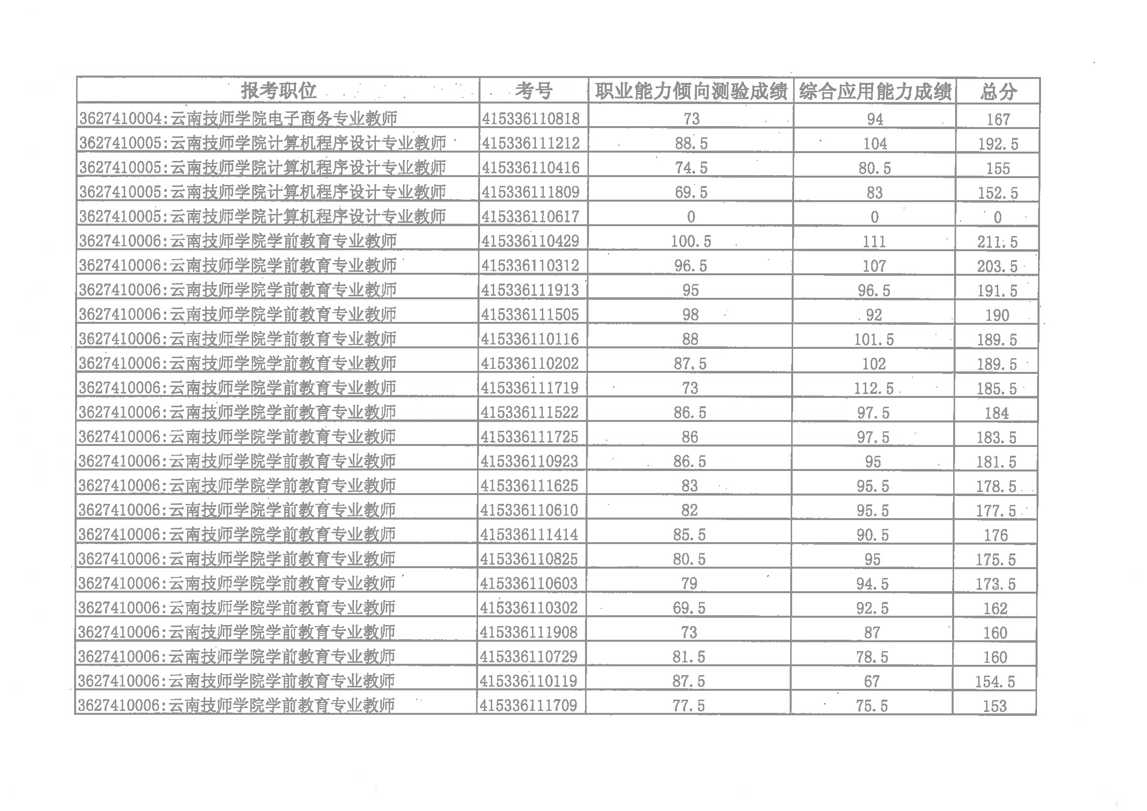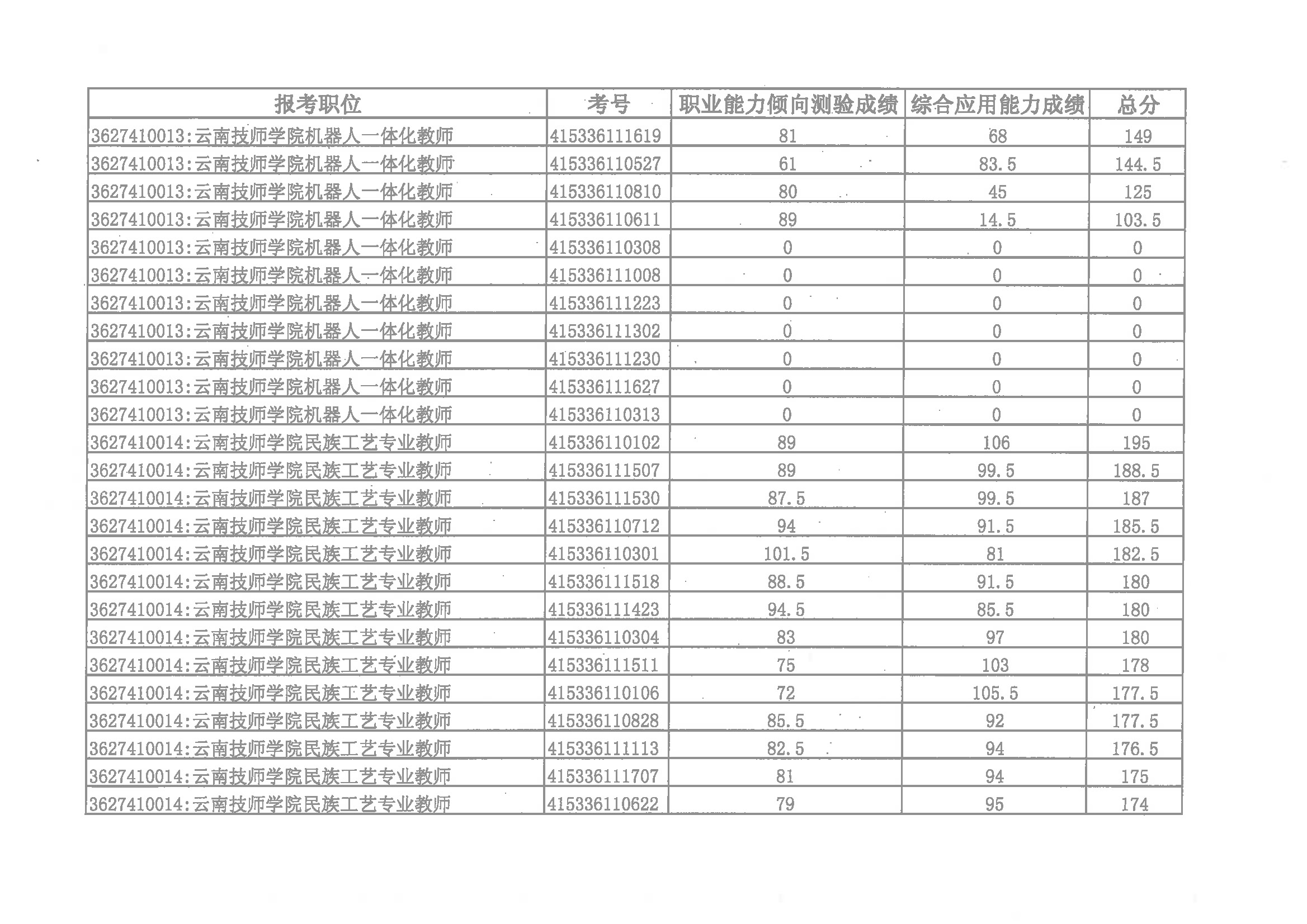 云南技師學(xué)院2016年面向社會公開招聘教師筆試成績公示