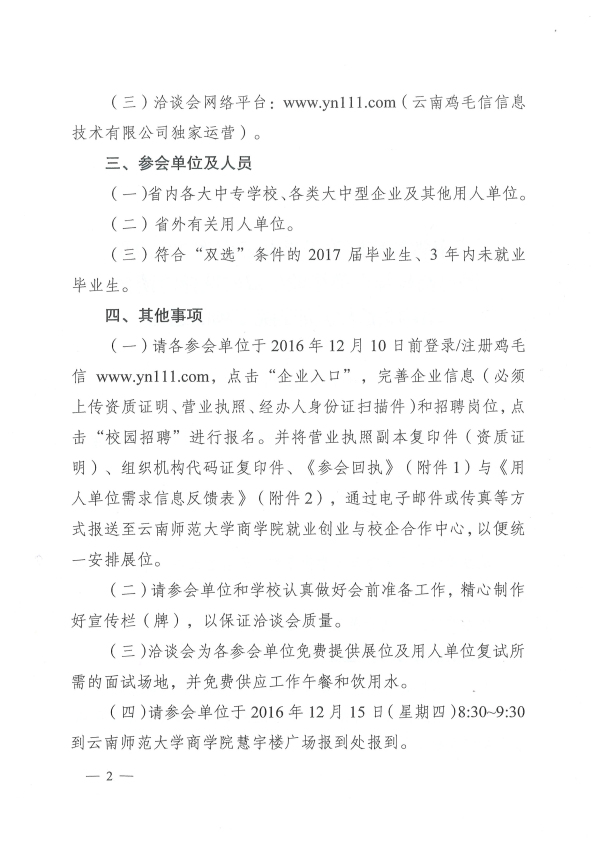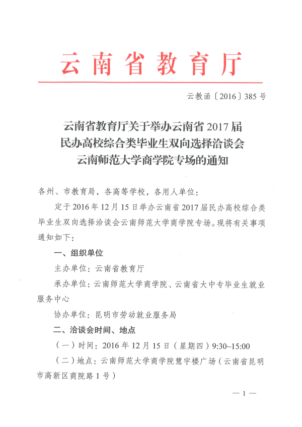 云南師范大學(xué)商學(xué)院2017屆民辦綜合類畢業(yè)生雙向選擇洽談會(huì)通知