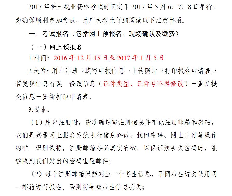 2017年全國護(hù)士執(zhí)業(yè)資格考試考生須知