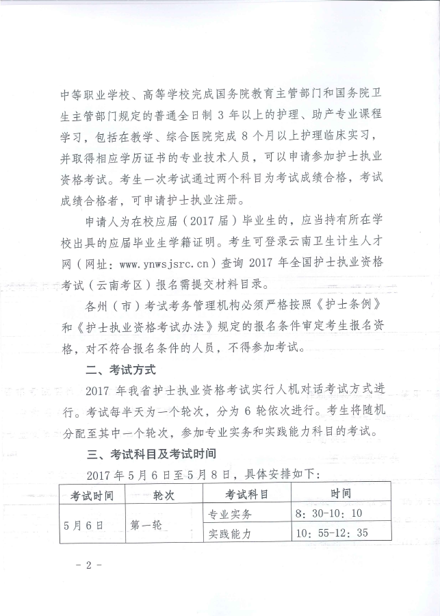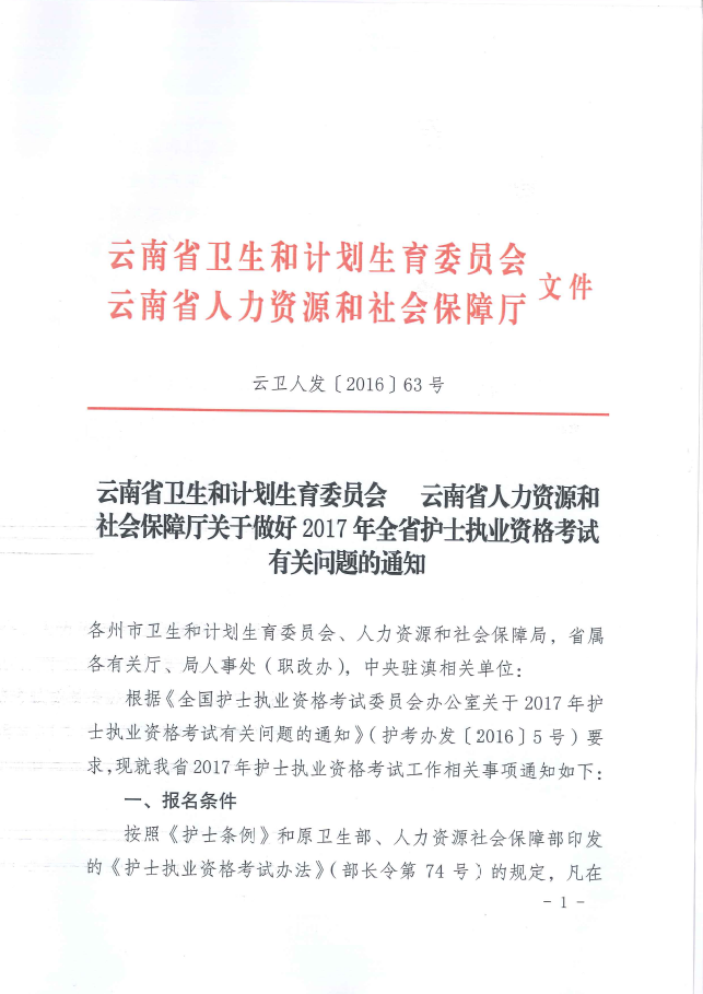 云南省2017年全省護(hù)士執(zhí)業(yè)資格考試通知