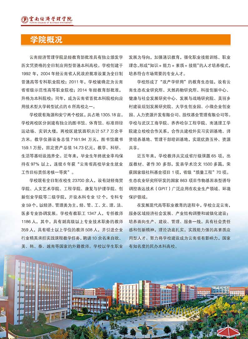 云南經濟管理學院2020年招生章程