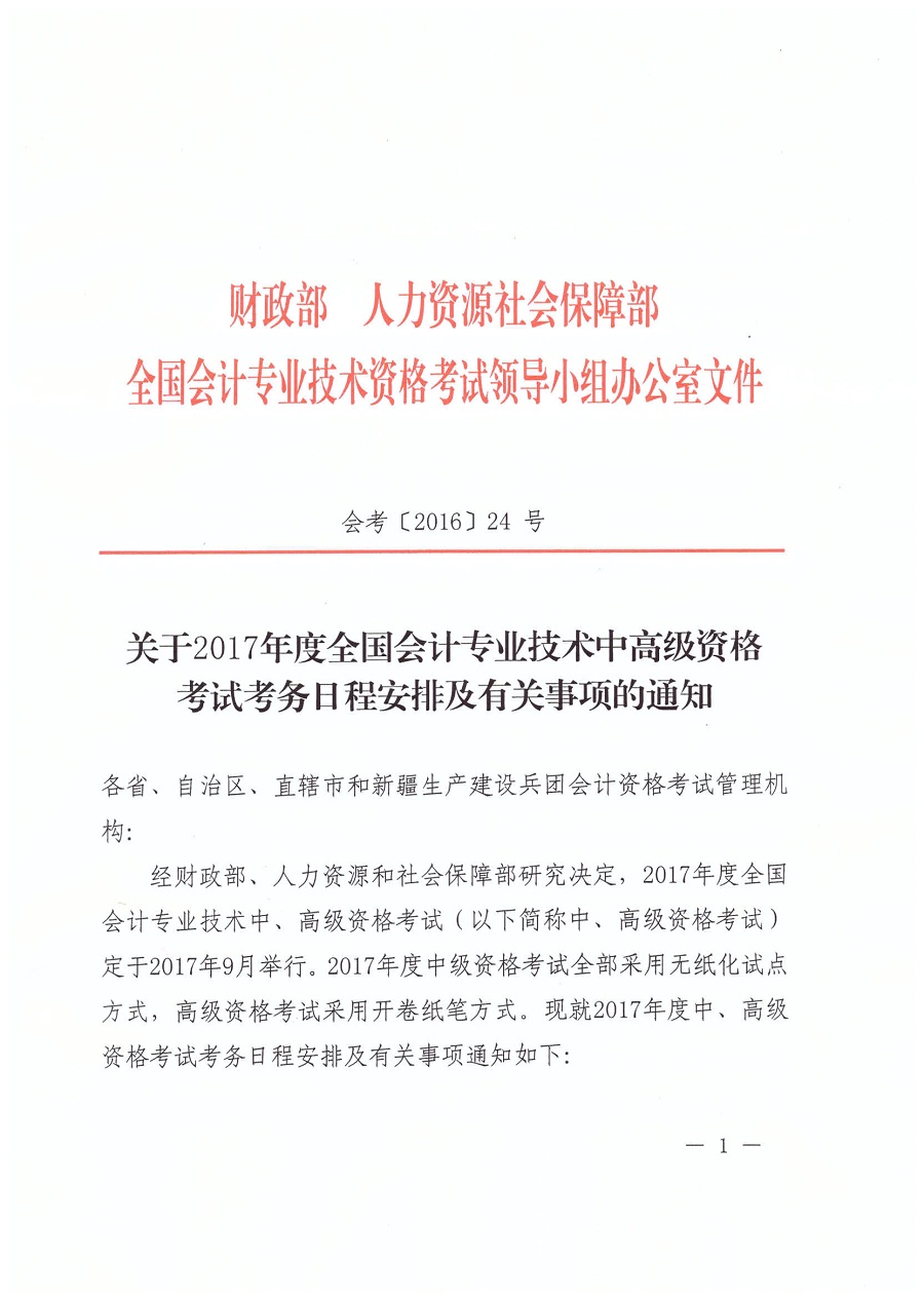 2017年全國會(huì)計(jì)專業(yè)技術(shù)中高級(jí)資格考試報(bào)名工作年限等有關(guān)通知
