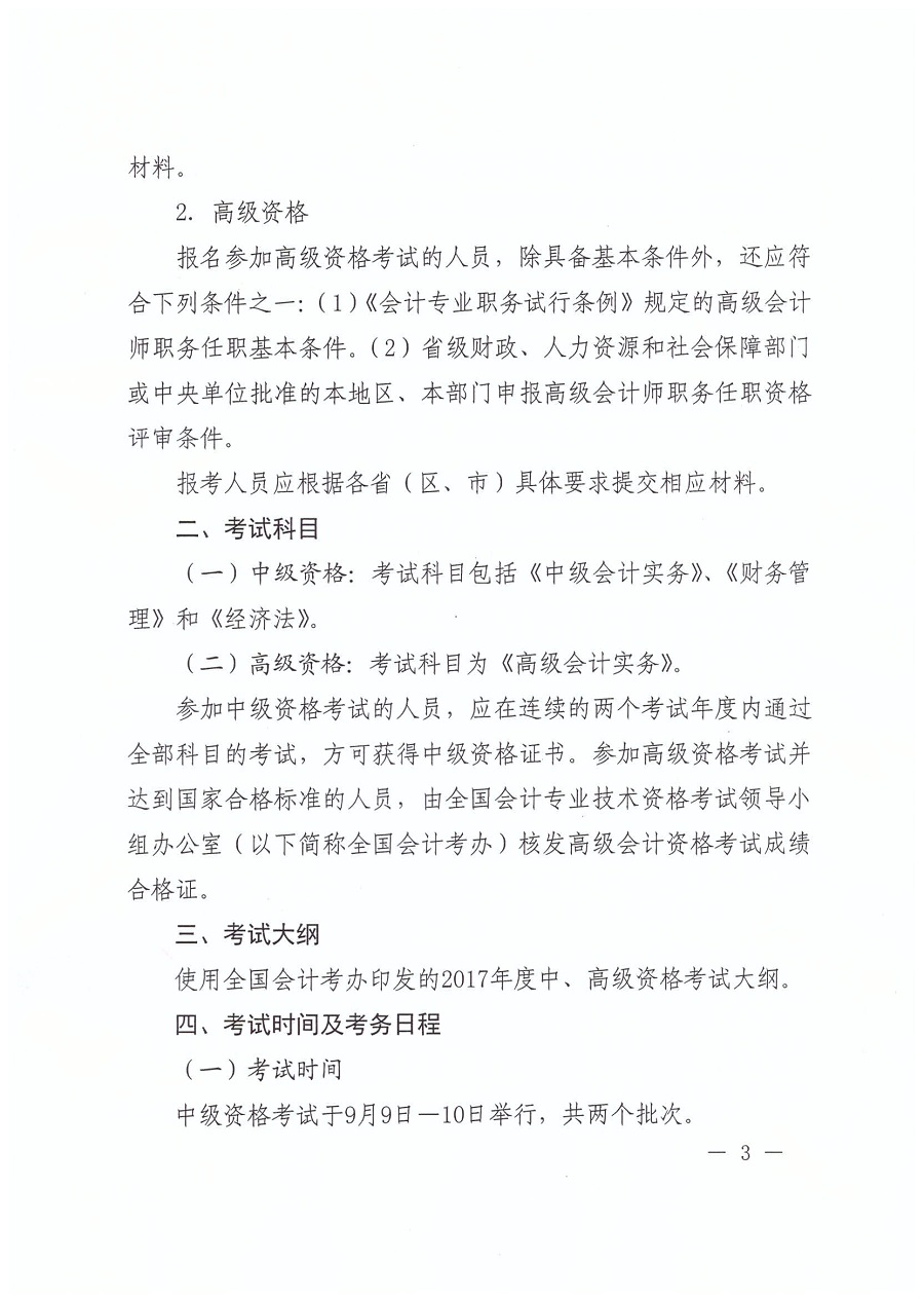 2017年全國會(huì)計(jì)專業(yè)技術(shù)中高級(jí)資格考試考務(wù)通知