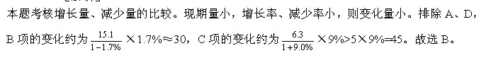 112、參考答案:A【解析】本題屬于比重比較題型。由表格可知,2011年7月轎車產(chǎn)量的增長(zhǎng)率為12.6%,汽車的增長(zhǎng)率為-1.3%,所以比重上升了77.7/131.8×(1+12.6%)-(1-1.3%)/1+12.6%=77.7/131.8×0.139/1.126≈60/100×1/8=7.5%,與A最為接近,選A。