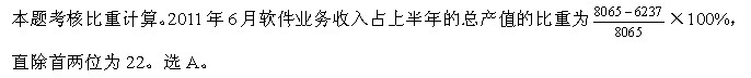 119、參考答案:B【解析】本題考核現(xiàn)基期比重比較大小。要求2011年上半年收入占整個(gè)軟件產(chǎn)業(yè)的比重高于上年同期的是哪一項(xiàng)數(shù)據(jù),只需找出同比增速高于整個(gè)軟件產(chǎn)業(yè)收入同比增速的那項(xiàng)數(shù)據(jù)即可,由第二段可知,只有嵌入式系統(tǒng)軟件的增長(zhǎng)率33.8%,高于上半年軟件產(chǎn)業(yè)的增長(zhǎng)率29.3%。選B。