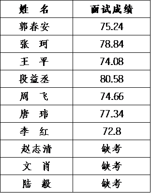根據(jù)《關(guān)于招聘玉溪市江川區(qū)電子商務(wù)辦公室工作人員的通告》要求,2017年2月20日下午2:00,在玉溪市江川區(qū)人才市場組織對擬聘人員進行面試,現(xiàn)將面試成績進行公示如下: