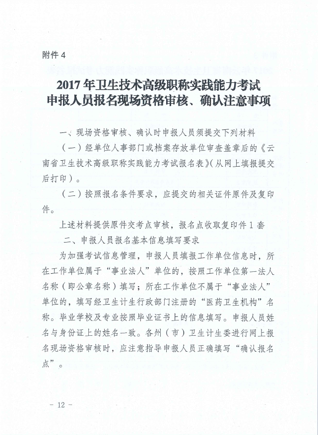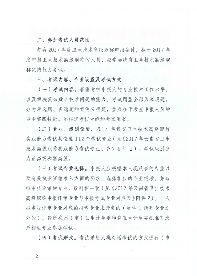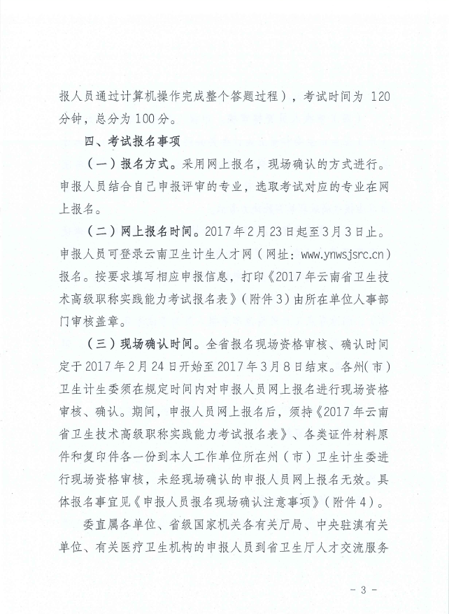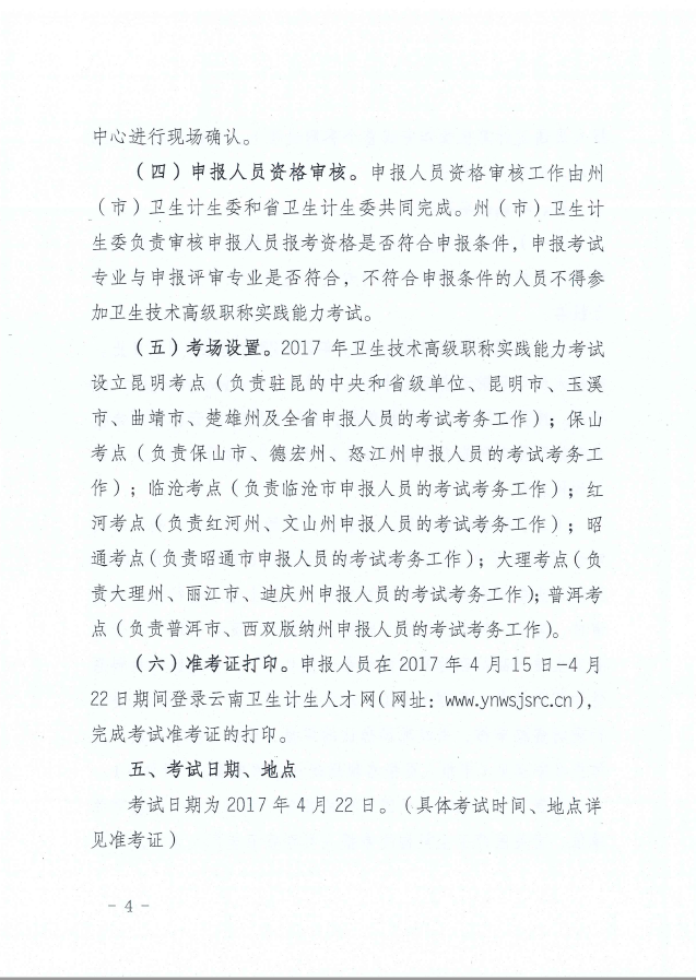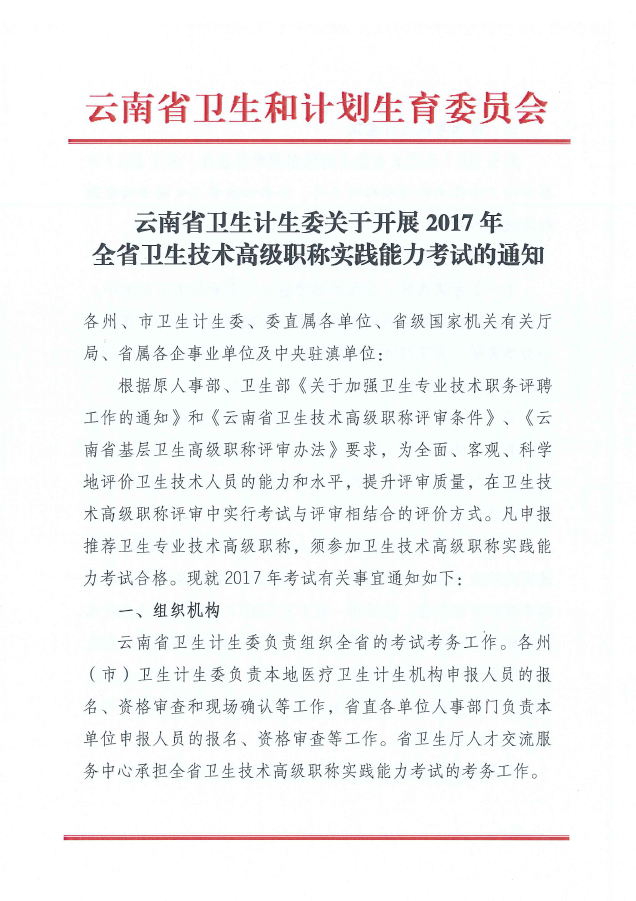 云南省2017年全省衛(wèi)生技術(shù)高級職稱實踐能力考試通知