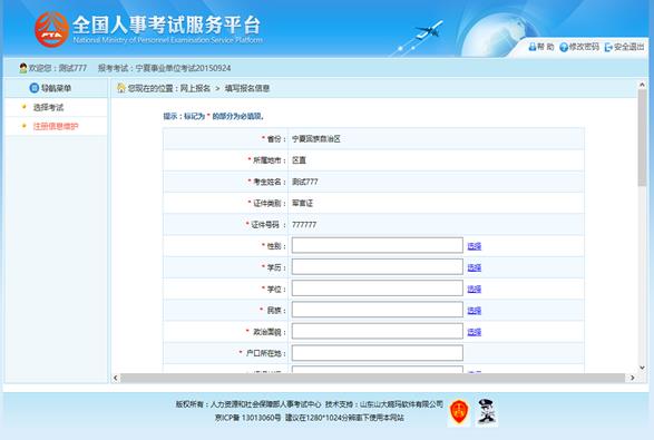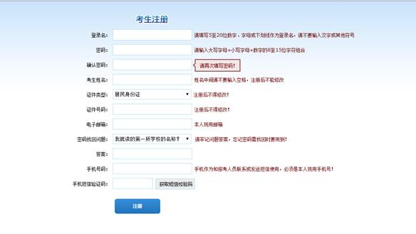 點(diǎn)擊“注冊”按鈕,進(jìn)入考生注冊頁面,如下圖所示: