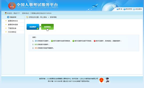 選擇相應(yīng)的職位,點(diǎn)擊“保存”按鈕,提示保存成功,跳轉(zhuǎn)到報考流程頁面,如下圖所示: