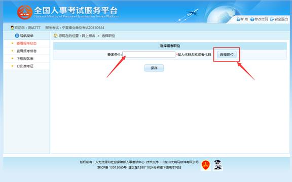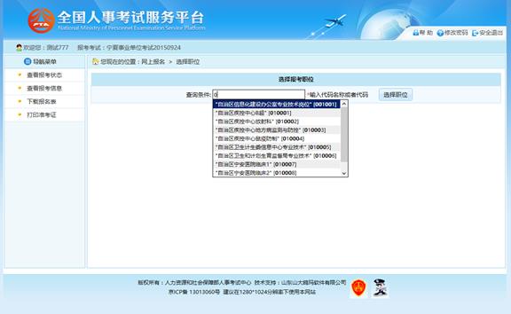 點(diǎn)擊“選擇職位”選項(xiàng),可以跳轉(zhuǎn)到選擇報考職位界面,如下圖所示: