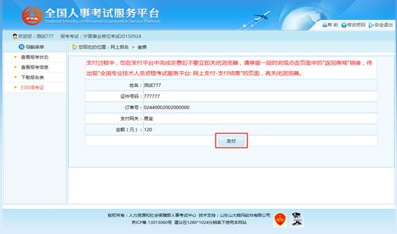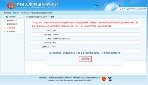 訂單確認(rèn)無誤后,點(diǎn)擊“支付”按鈕,成功后再點(diǎn)擊“支付完畢”按鈕完成網(wǎng)上支付操作,如下圖所示: