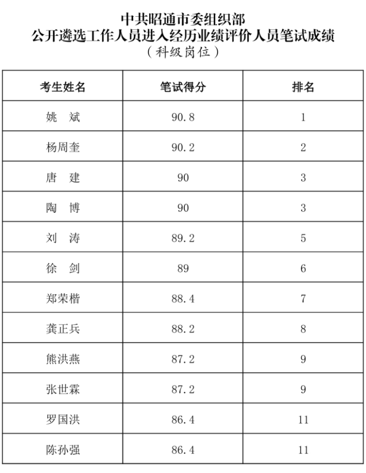 進(jìn)入經(jīng)歷業(yè)績(jī)?cè)u(píng)價(jià)人員筆試成績(jī)及相關(guān)事項(xiàng)公告