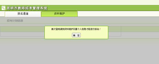 2、對于首次登陸的用戶,系統(tǒng)會提示補(bǔ)充完善個(gè)人資料信息。必須填寫完善資料,否則無法報(bào)名。