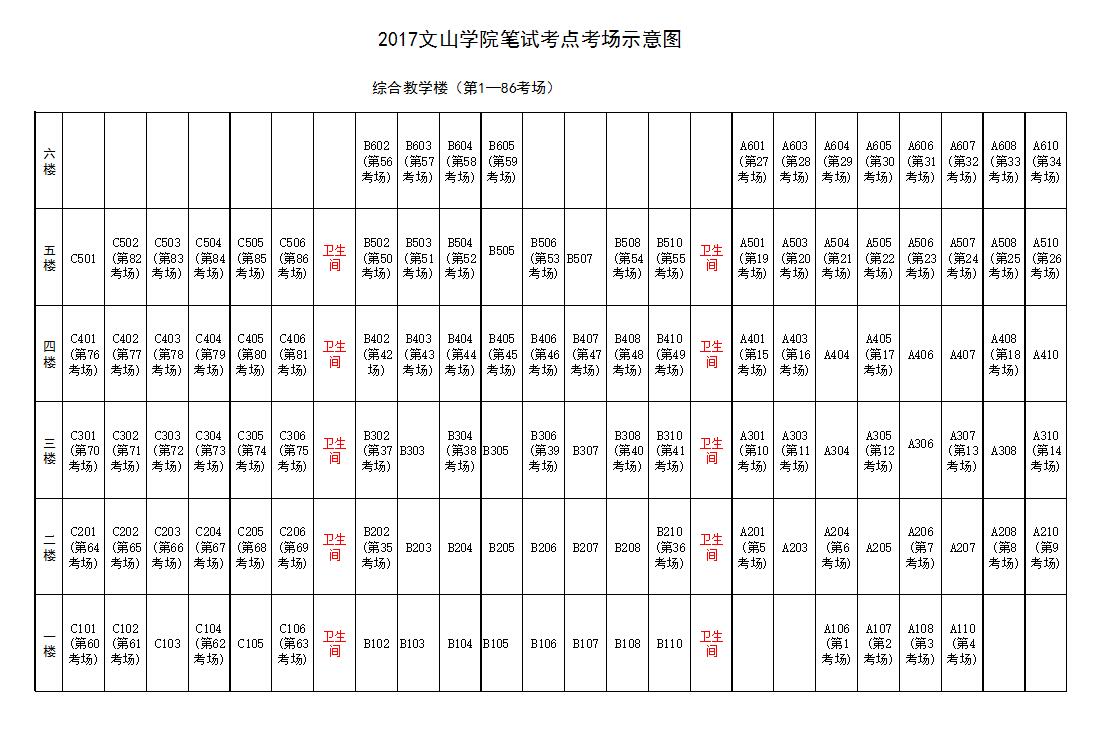 2017年文山州第一中學公務員考試考點考場分布示意圖
