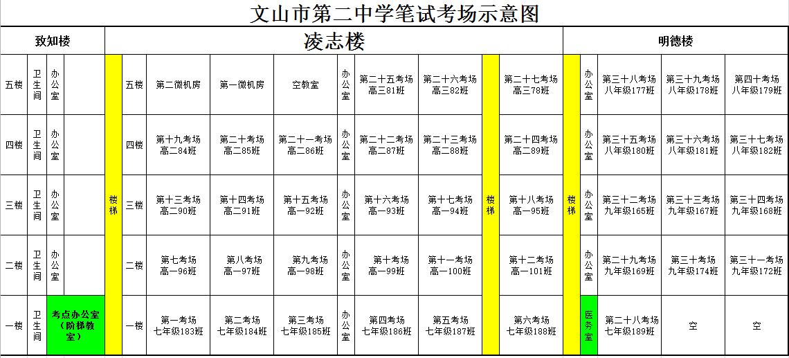 2017年文山市第二中學(xué)公務(wù)員考試考點(diǎn)考場分布示意圖