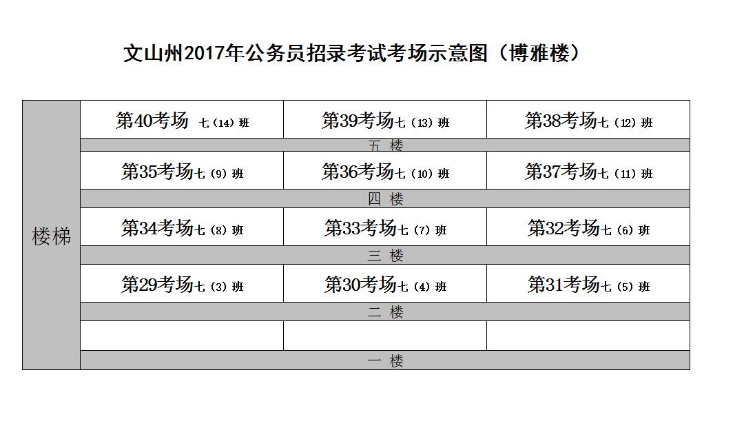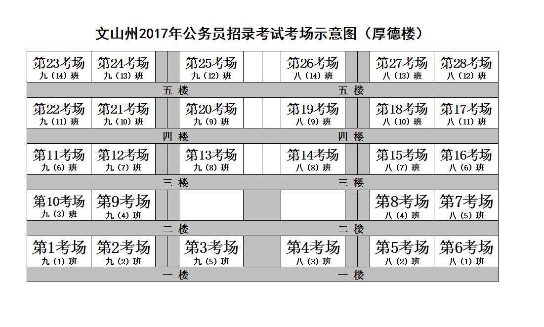 2017年文山市第四中學(xué)公務(wù)員考試考點(diǎn)考場分布示意圖
