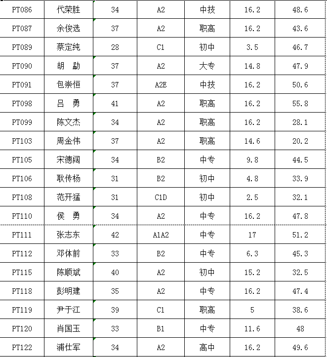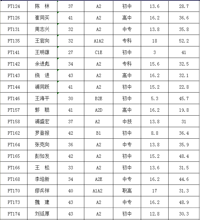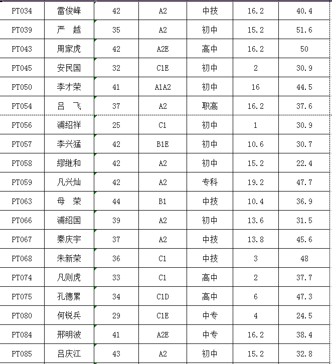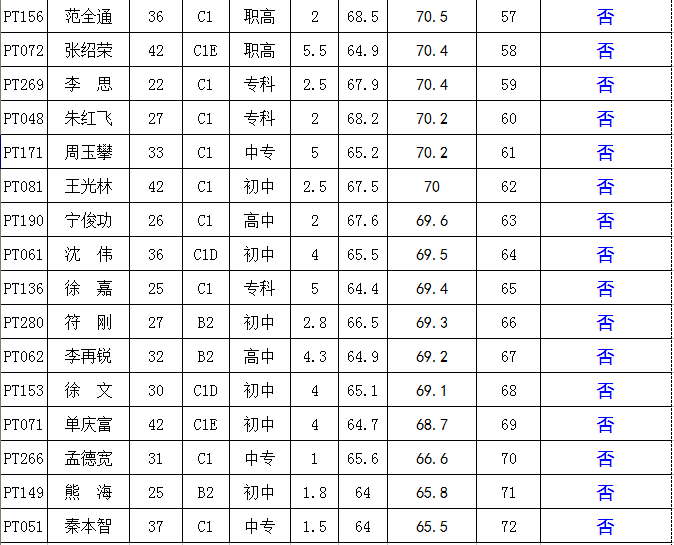 (二)按規(guī)定,對技術(shù)知識測試得分未達(dá)到64分控制線的103名考生,不再納入綜合得分計(jì)算、排名環(huán)節(jié),直接淘汰(詳見附表)。