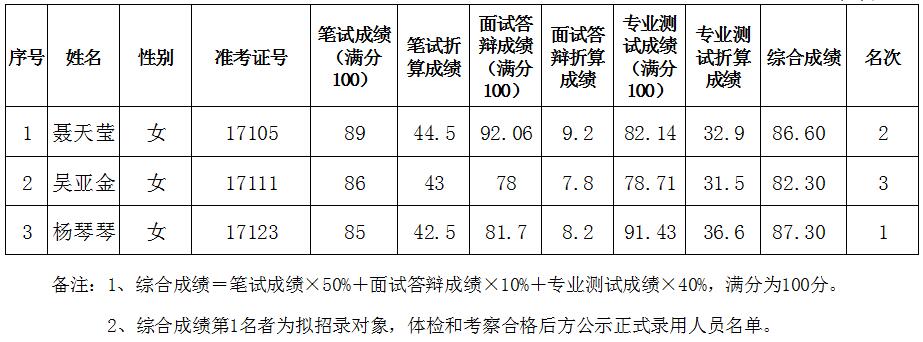 云南民族中學(xué)2017年教師招聘綜合成績(英語學(xué)科)公示