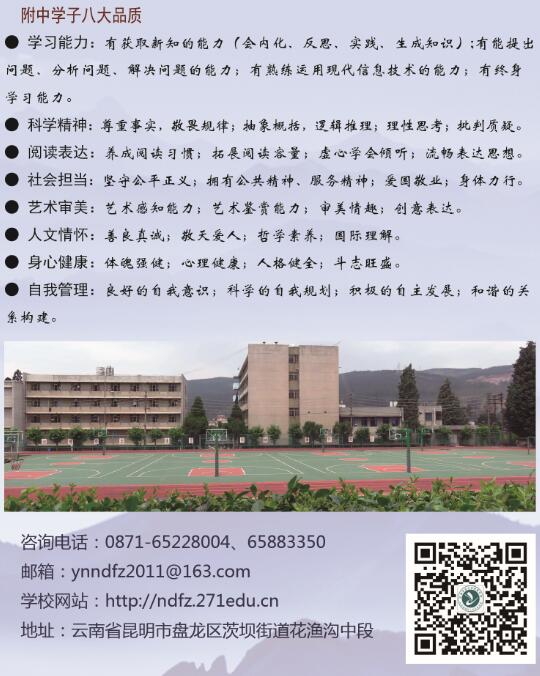 報(bào)名地點(diǎn):昆明市盤(pán)龍區(qū)茨壩街道花漁溝中段云南農(nóng)業(yè)大學(xué)附屬中學(xué)招生辦公室