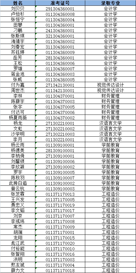 2017年專升本-錄取名單
