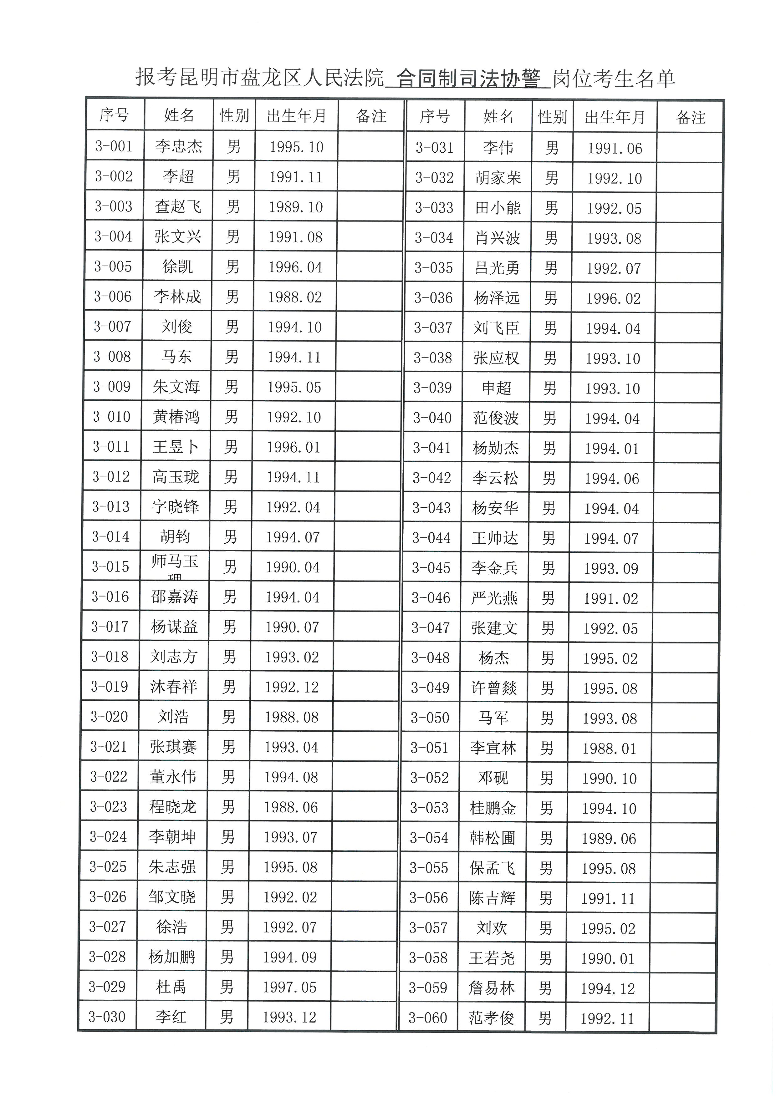 4、領取準考證時,請?zhí)峁士甲C序號如“法律專業(yè)書記員崗位1-001、非法律專業(yè)書記員崗位2-001、司法協(xié)警崗位3-001等”(詳見考生名單)。