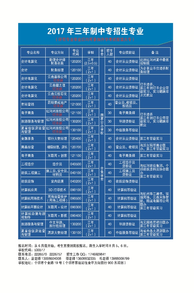 紅河財(cái)經(jīng)學(xué)校2017年招生簡(jiǎn)章
